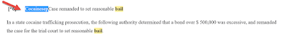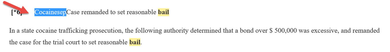 Error of the Day A Lexis typo (possibly scanning error) in Excessiveness of Bail in State Cases, 7 A.L.R.6th 487. The following group of letters is used six times throughout the document, CocainesepBail. A quick look at the Westlaw version shows that it should be Cocaine – Bail