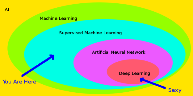 With all of this ambiguity about what AI is, why are people so eager to slap the term on everything these days? Well, there have been some impressive and highly publicized accomplishments with cutting edge technologies recently and it can feel good to have a little of the hype rub off on you. Many of those accomplishments have been achieved with something called deep learning. The artificial neural network, which is a classifier that performs computations using a network structure that vaguely resembles the human brain, has been around for about 50 years but it didn’t work very well until some algorithms for effectively using a large number of layers, known as deep learning, were invented in 2006. Deep learning is able to accurately classify things even when the important relationships between the inputs are very complex as long as there is enough training data to nail down the parameters that describe all of that complexity.