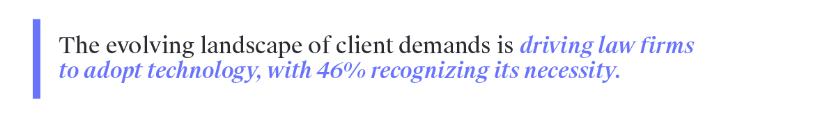 The time and resources saved through AI can be redirected towards client interaction and providing more personalized service. The evolving landscape of client demands is driving law firms to adopt technology, with 46% recognizing its necessity. By harnessing AI for labor-intensive tasks, lawyers can focus on understanding their client’s needs and crafting tailored legal strategies, thus enhancing the client experience.