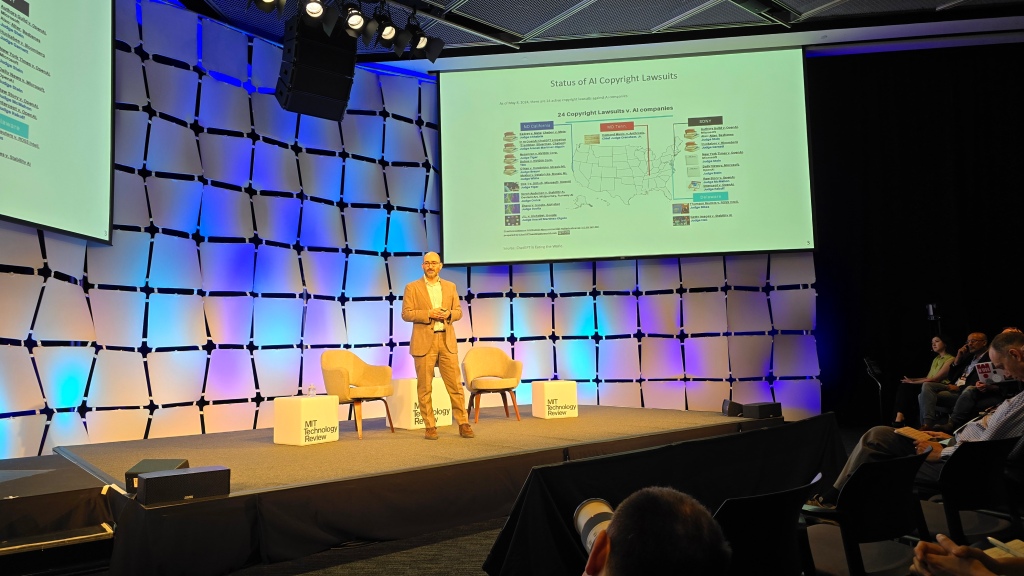 The session “AI Goes to Court” at the MIT EmTech Digital conference was led by Amir Ghavi, AI, Tech Transactions & IP Partner at Fried Frank LLP. Ghavi, who represents several prominent AI companies such as Stability AI, took the stage with a lively and engaging presentation, acknowledging the challenge of discussing lawsuits before lunch. He aimed to shed light on why foundation model developers are frequently getting sued, with 24 lawsuits already filed in 2024.