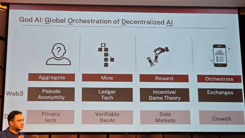 Raskar began with a fascinating anecdote about a “Talk to God” booth at Burning Man, where festival-goers shared their deepest secrets with a voice on the other end of the line. This quirky setup underscored a fundamental human desire for a trusted, all-knowing advisor—something Raskar believes decentralized AI can aspire to become.