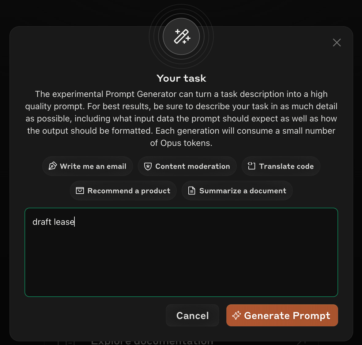 Anthropic’s Prompt Generator takes the naive prompt “draft lease” and produces a highly detailed prompt, employing the best practices we’ve discussed.