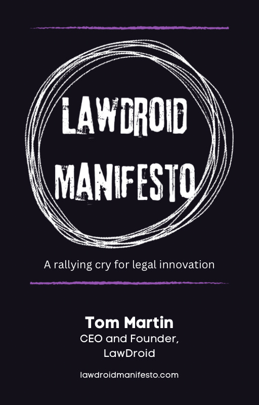 I’ve been thinking for a while now about how to distill the “manifesto” in LawDroid Manifesto into something coherent and actionable. People have asked me if I had it written down anywhere. Something I could share with the world. Until now, the ideas have only been swirling around in my head. And, just to be clear, we’re not talking about a manifesto, in the living-off-the-grid-in-a-forest-cabin sense of the word. Rather, this manifesto is intended to be a vision of the values and beliefs underpinning a new and better relationship we can create and have with the law, for all of us.