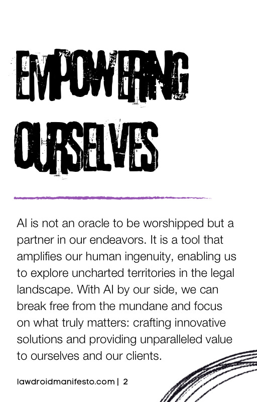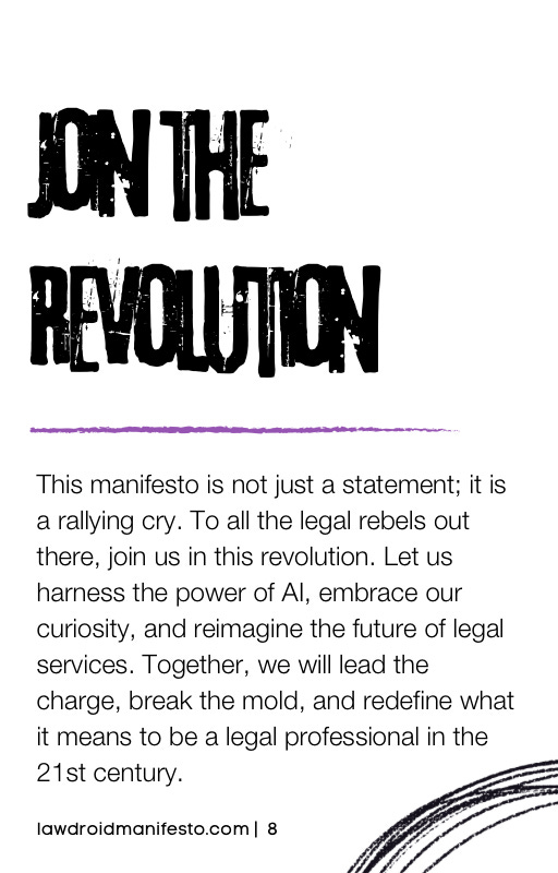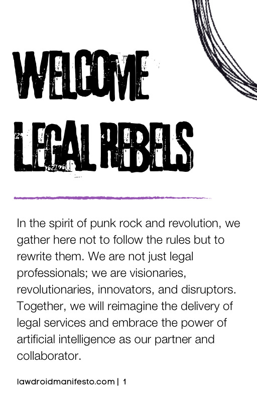 This is more than a manifesto – it’s a movement. A movement to reshape the future of law and expand access to justice. As legal rebels, we each have a unique role to play in driving this change. Whether you’re experimenting with AI in your own practice, advocating for policy reform, or mentoring the next generation of innovators, every action matters. So let’s get to work.