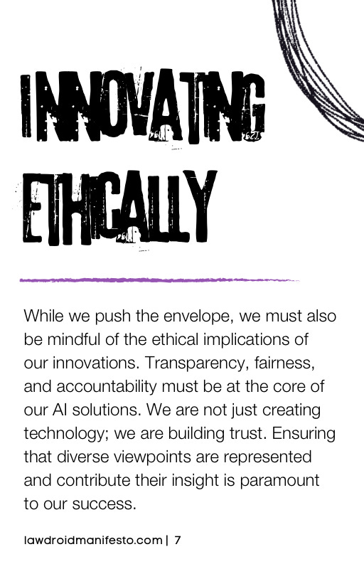 As we push the boundaries of AI in law, ethics must be at the forefront. We need robust frameworks for ensuring that our AI systems are fair, transparent, and accountable. AI must deliver efficiency and value, but also accuracy and quality. We need ongoing dialogue about the human impact of legal technology. Most importantly, we need a shared commitment to building and maintaining trust with those we serve.