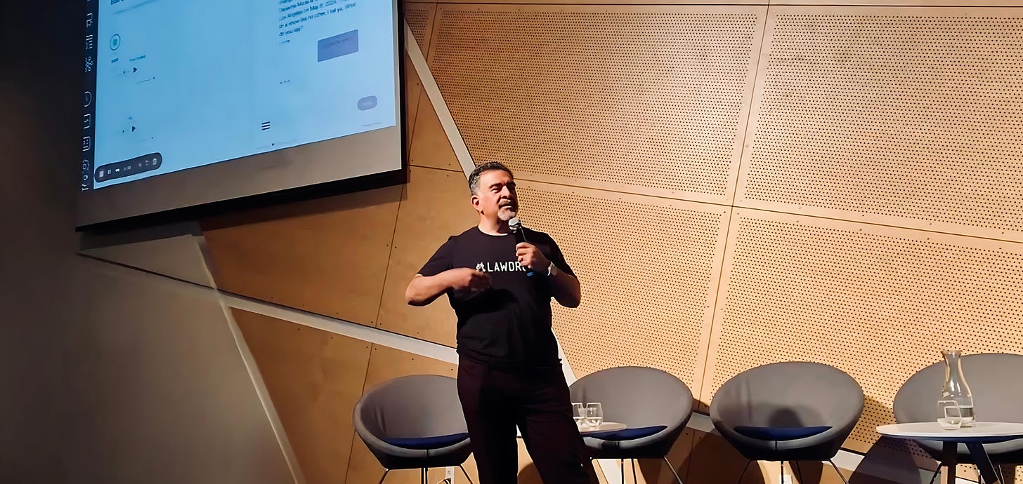 – Rather than pitch LawDroid per se, I used the opportunity to educate the crowd about AI agents. How are they different than chatbots? What value do they unlock?
