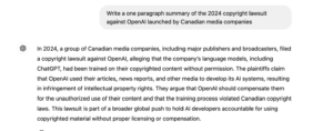 Canada’s largest media companies, including the Globe and Mail, Toronto Star, Postmedia, CBC, and Canadian Press, came together last week to file a copyright infringement lawsuit against OpenAI, the owners of ChatGPT. The lawsuit is the first high profile Canadian claim lodged against the enormously popular AI service, though there have been similar suits filed elsewhere, notably including a New York Times lawsuit launched last year. While the lawsuit itself isn’t a huge surprise, the relatively weak, narrow scope of the claims discussed below are. Unlike comparable lawsuits, the Canadian media companies claim is largely limited to data scraping, which may be the weakest copyright claim. Moreover, the companies say they have no actual knowledge of when, where, or how their data was accessed, an acknowledgement that doesn’t inspire confidence when there is evidence available if you know where to look.