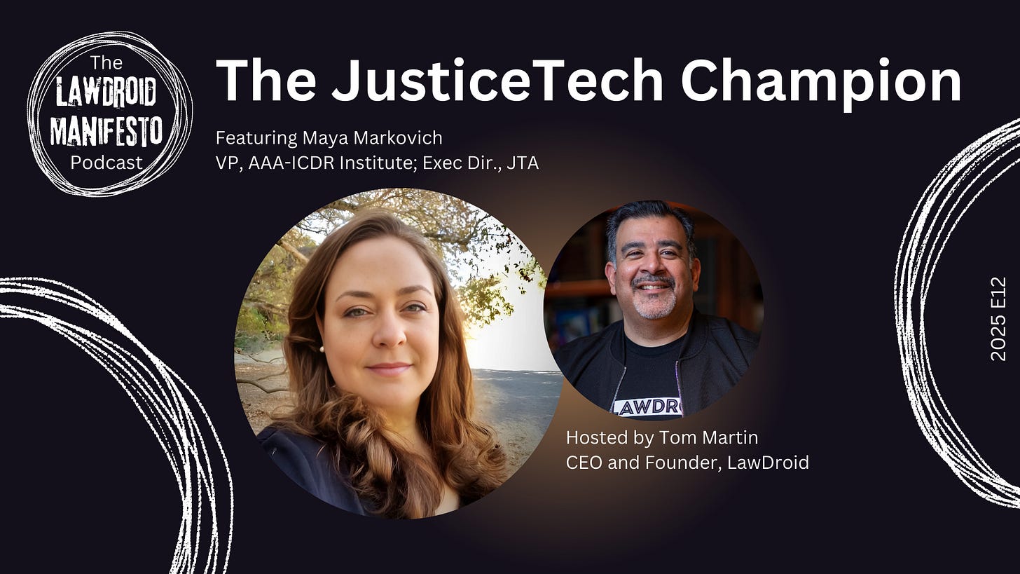 Join me as I interview Maya Markovich, VP at the American Arbitration Association and Executive Director of the Justice Tech Association.
