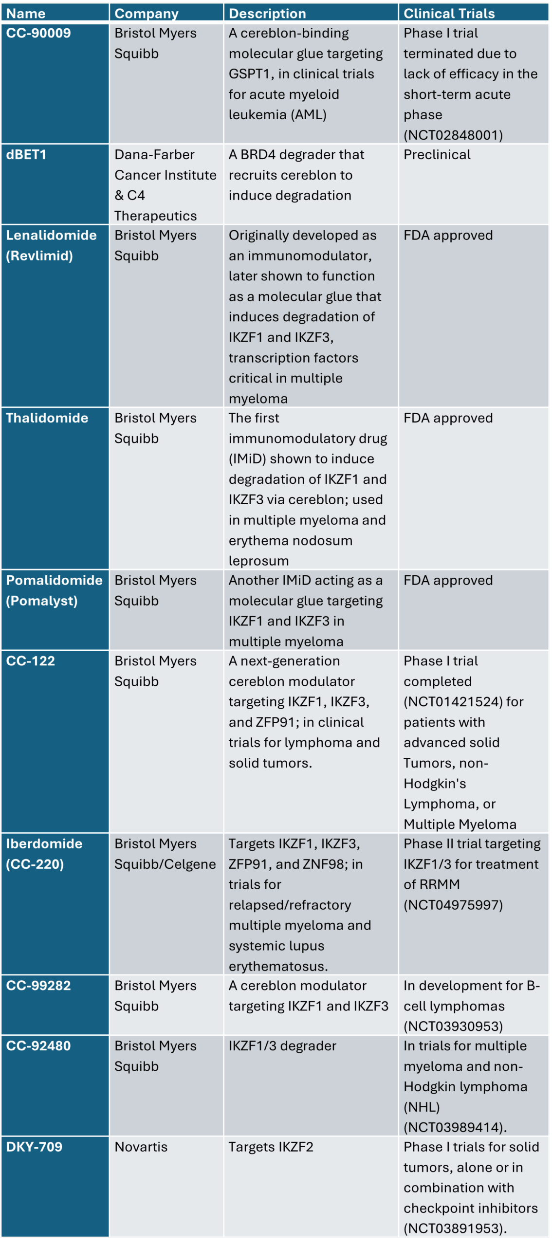 [10] Oleinikovas, Vladas, et al. “From thalidomide to rational molecular glue design for targeted protein degradation.” Annual review of pharmacology and toxicology 64.1 (2024): 291-312.