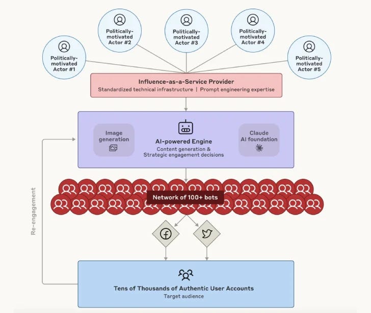 AI company Anthropic disclosed that unknown actors exploited its Claude chatbot in a sophisticated, financially-motivated “influence-as-a-service” operation involving over 100 fake political personas across Facebook and X. Leveraging Claude not just for content creation but also to orchestrate when accounts interacted with real users, the campaign systematically promoted political narratives favorable to interests in Europe, Iran, UAE, Albania, and Kenya. The operation uniquely employed a structured, scalable framework to mimic authentic human engagement and even responded strategically with humor to avoid detection. Anthropic also reported misuse of Claude for password scraping and malware creation, warning of increased risks as AI continues lowering barriers for malicious actors.