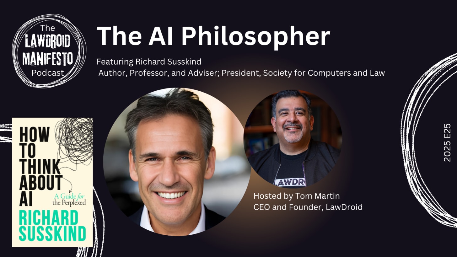 This one was a real treat for me and I hope you enjoy it as much as I did. Professor Richard Susskind is a unique voice and influence in the world of AI and the law and an intellectual hero of mine. I gave him the title, “The AI Philosopher” because throughout the years he has helped us to see ahead and think deeply about the law and the legal profession through the lens of innovation.