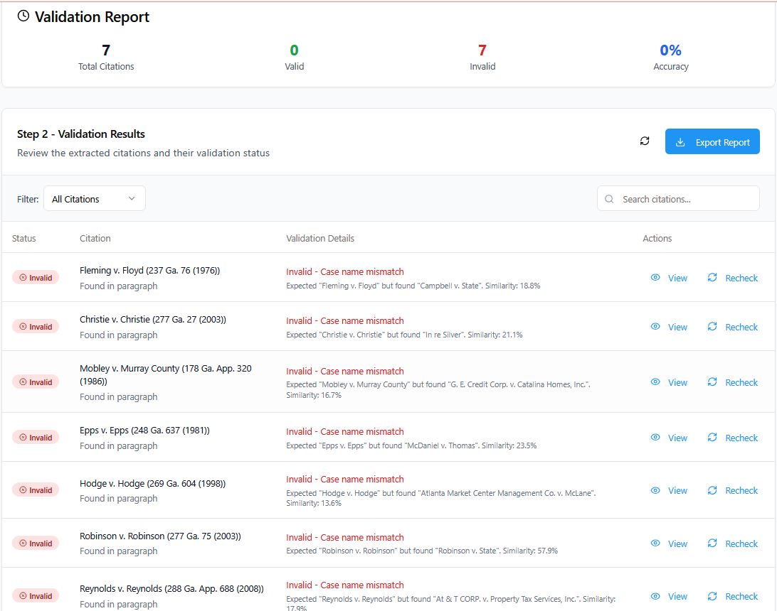 Bob Ambrogi posted a review of the application that he tested with the Mata v. Avianca, Inc.documents and a document he filed when in practice. From this review, I knew to expect a few false “invalid” markings if the case only has a Lexis or Westlaw citation or if there are abbreviation issues with the case citation. Bob noted that these issues were relatively easy to spot since CiteCheck AI lists the reason it marked the citation invalid.