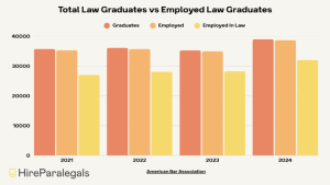 One indicator of this is the graduate employment rate. The percentage of law graduates employed in the legal industry reached 82% in 2024, up from 80% in 2023 and 75.6% in 2021, a trend that has accompanied an overall increase in law school enrollment and graduation, “defying predictions that a double-digit enrollment surge would weaken job prospects” (ABA/Reuters 2025).