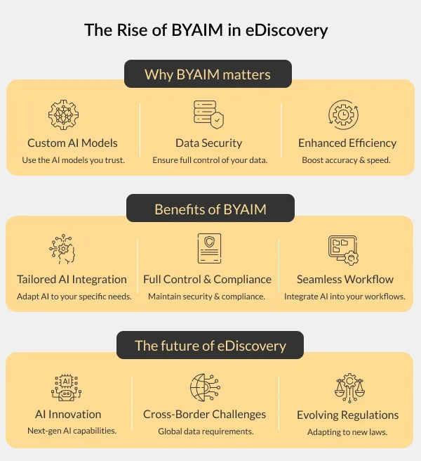 Industry leaders believe that by 2027, eDiscovery platforms that don’t support BYAIM will be viewed as obsolete. The competitive edge has moved from “having AI” to “how well you can deploy the AI you already trust.